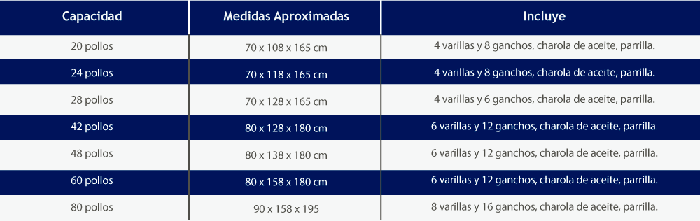 Existen varios tipos de rosticero, dependiendo del estilo de pollo a preparar: