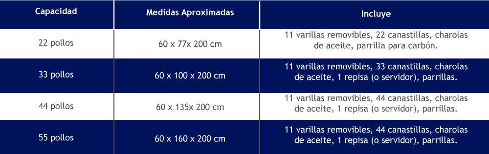Existen varios tipos de rosticero, dependiendo del estilo de pollo a preparar: